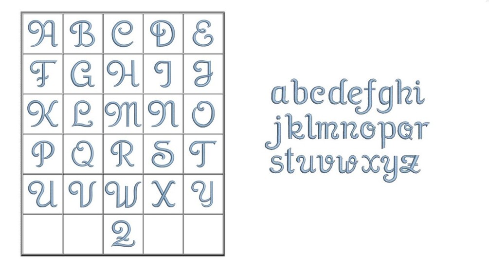 You'll get the alphabet letters in ART, DST, HUS, JEF & PES formats